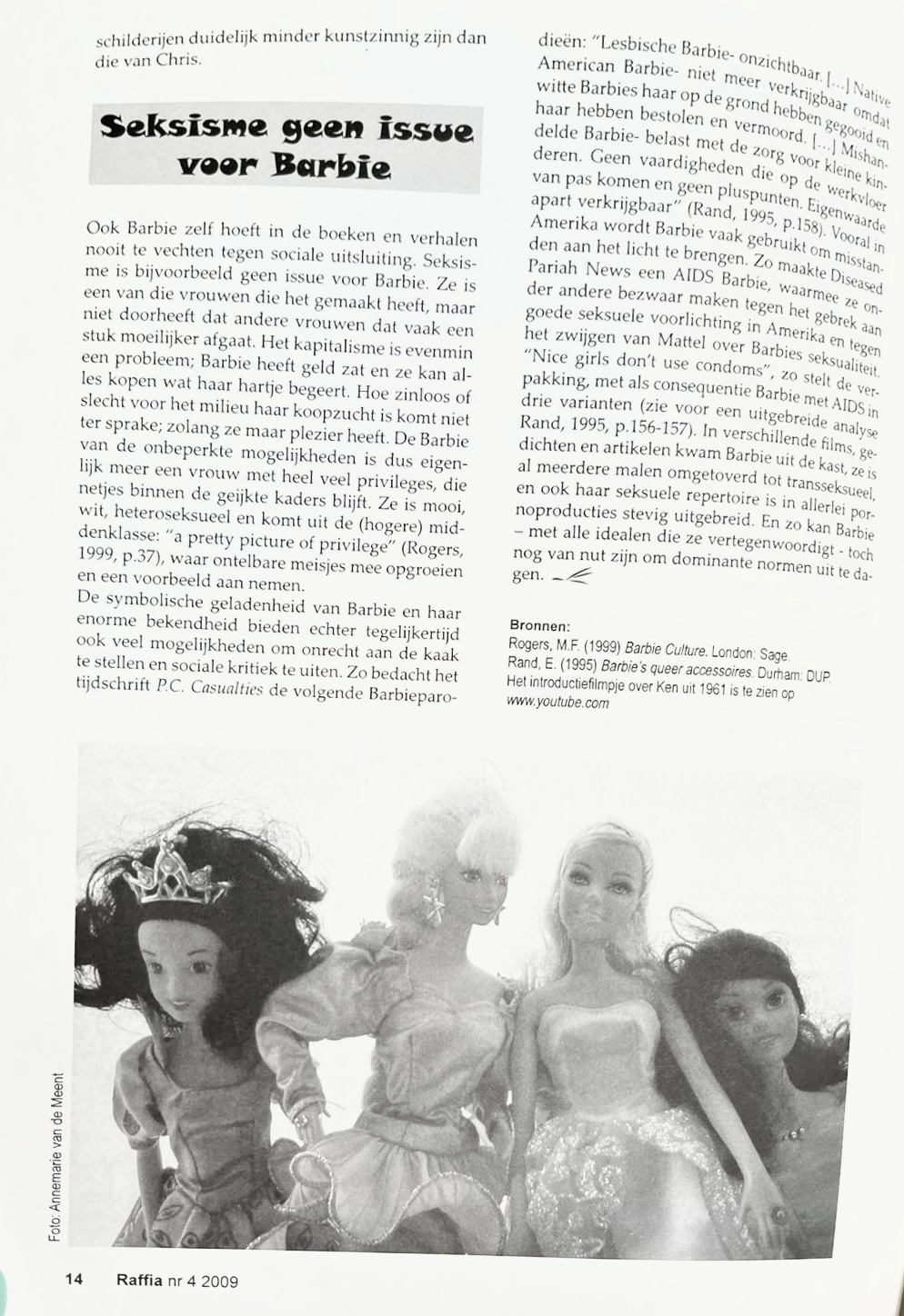 In her 50 years of existence, Barbie has had many adventures and worked in dozens of professions. She set foot on the moon before Neil Armstrong ever did, had access to parties where movie stars could only dream of, and saw more of the world than any other average citizen. The possibilities of Barbie seem limitless: she is the woman who can do anything. Behind this façade, however, hides a conservative woman who on all fronts is very privileged. At the same time, she unintentionally helps to denounce these privileges.