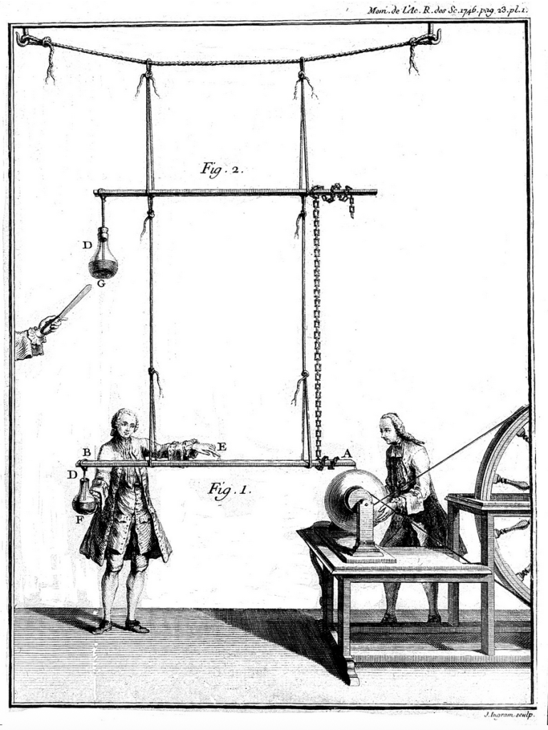 The visual experiment was considered appropriate for women because it showed complicated phenomena, such as magnetism and electricity, without requiring theoretical knowledge of their workings. A popular example was the ‘Leyden jar’, a glass invention that stored static electricity and produced shocks upon touching its surface. Using this type of invention made knowledge accessible for an uneducated audience, but did not offer a deeper understanding of science.